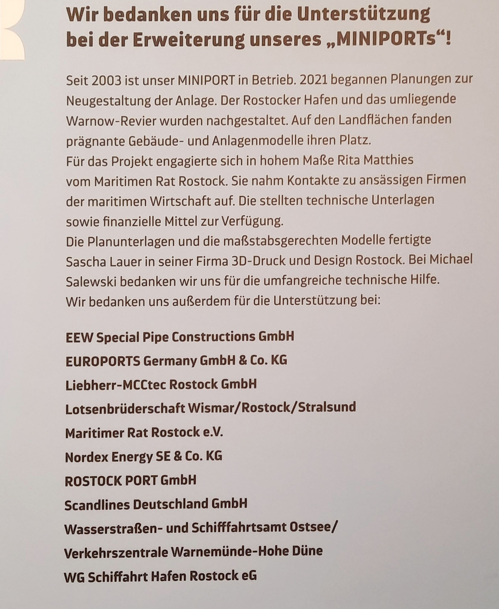 Im Rahmen der Veranstaltung wurde auch den zahlreichen Förderern und ehrenamtlichen Unterstützern gedankt, die die Erweiterung möglich gemacht haben. Ein besonderer Dank gilt dabei Frau Rita Matthies vom Maritimen Rat Rostock.